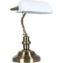 Настольная лампа офисная стиля модерн для кабинета, офиса имеет размеры 270х400х250 мм. Арматура светильника окрашена в бронзовый цвет. Лампы в комплекте - отсутствуют. В светильнике применяются лампы накаливания или светодиодная LED-лампа. Цвет плафонов - белый, с глянцевой поверхностью. Материал плафонов - стекло. Класс электробезопасности - II, степень пылевлагозащиты (IP) - 20. Максимальная мощность лампы (Вт) - 60. Светильник размещается на столе.