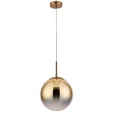 Подвесной светильник стиля лофт для гостиной, кабинета, коридора, прихожей или спальни имеет размеры 250x1370 мм. Арматура светильника окрашена в золотой цвет. Лампы в комплекте - отсутствуют. В светильнике применяются лампы накаливания или светодиодная LED-лампа. Цвет плафонов - золото, с глянцевой поверхностью. Материал плафонов - стекло. Класс электробезопасности - I, степень пылевлагозащиты (IP) - 20. Максимальная мощность лампы (Вт) - 60. Светильник размещается на потолоке.