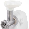 Реверс: есть • Производительность: 0.4 кг/мин • Насадки-решетки: Есть, 3 штуки • Насадки для шинковки: Есть, 4 штуки • Прочие насадки: для приготовления колбас, для формовки теста • Соковыжималка: есть • Отделение для хранения насадок: есть • Лоток для подачи продуктов: есть, пластик • Цвет корпуса: белый • Материал корпуса: пластик • Максимальная мощность: 1500 Вт
