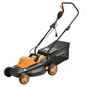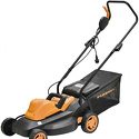 Колесная газонокосилка , электрический двигатель (1400 Вт) от сетевого кабеля, ширина скашивания 37 см, регулировка высоты скашивания (27-75 мм) мягкий травосборник,11 кг