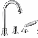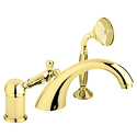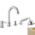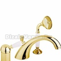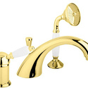 Назначение: ванна+душ • Конструкция: однорычажный • Монтаж: горизонтальный • Материал: покрытие - золото • Монтажные отверстия: 4 отверстия • Форма излива: традиционная • Душевая лейка в комплекте: есть