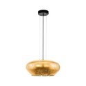 Подвесной светильник стиля модерн для гостиной, кабинета, прихожей или спальни имеет размеры 500x1500 мм. Арматура светильника окрашена в черный цвет. Лампы в комплекте - отсутствуют. В светильнике применяются светодиодная LED-лампа. Цвет плафонов - золотистый, с матовой поверхностью. Материал плафонов - стекло. Класс электробезопасности - I, степень пылевлагозащиты (IP) - 20. Максимальная мощность лампы (Вт) - 20. Светильник размещается на потолоке.