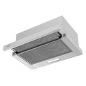 конструкция телескопическая • монтаж для встраивания • ширина 50 см • управление механическое/кнопочное • производительность мотора 690 м³/ч • цвет белый/серый
