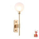 Бра стиля модерн для гостиной, кабинета или спальни имеет размеры 130x310x90 мм. Арматура светильника окрашена в золотой цвет. Лампы в комплекте - отсутствуют. В светильнике применяются галогеновая лампа или светодиодная LED-лампа. Цвет плафонов - белый, с матовой поверхностью. Материал плафонов - стекло. Класс электробезопасности - I, степень пылевлагозащиты (IP) - 20. Максимальная мощность лампы (Вт) - 40. Светильник размещается на стене.