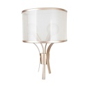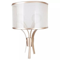 Бра стиля модерн для гостиной, кабинета или спальни имеет размеры 180x450x300 мм. Арматура светильника окрашена в латунный цвет. Лампы в комплекте - отсутствуют. В светильнике применяются галогеновая лампа или светодиодная LED-лампа. Цвет плафонов - белый, с матовой поверхностью. Материал плафонов - органза. Класс электробезопасности - I, степень пылевлагозащиты (IP) - 20. Максимальная мощность лампы (Вт) - 40. Светильник размещается на стене.