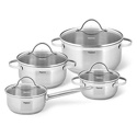 В наборе: кастрюли, ковш, 4 шт • Размер: от 14 см, до 24 см • Объем: от 1.1 л, до 5.2 л • Материал: сталь