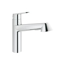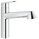 Смеситель однорычажный для кухни, DN 15 монтаж на одно отверстие с низким изливом GROHE SilkMove® керамический картридж 35 мм GROHE StarLight® хромированная поверхность регулировка расхода воды поворотный литой излив область поворота 140° выдвижная лейка автоматический переключатель аэратор/Speed.