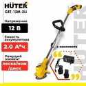 Производитель: Huter Модель: GET-12M-2Li - аккумуляторный - оснастка: леска+металлический нож+металлический диск+пластиковый нож - ширина скашивания: 15 см Описание