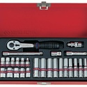 КомплектацияГоловки торцевые 1/4" 6-гранные: 5/32 , 3/16 , 7/32 , 1/4 , 9/32 , 5/16 , 11/32 , 3/8 , 7/16 , 15/32 , 1/2Головки торцевые 1/4" 6-гранные глубокие: 5/32 , 3/16 , 7/32 , 1/4 , 9/32 , 5/16 , 11/32 , 3/8 , 7/16 , 1/2Трещотка 1/4" с флажковым переключением 130 ммКардан 1/4"Удлинители: 50, 100 ммПереходник 1/4" - 3/8"