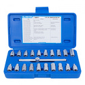 Комплектация- Шестигранник, мм: 8, 9, 10, 12, 13, 14, 17- Внешний четырёхгранный профиль, дюйм, мм: 5/16", 3/8", 7, 8, 10, 11, 12, 13,14- Профиль TORX: T45- Внешний трёхгранный профиль, дюйм, мм: 10- Профиль SPLINE: M16- Внутренний четырёхгранный профиль, мм: 10- Вороток Т-образный 3/8"- Кейс