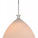 Подвесной светильник стиля модерн для гостиной, кабинета, кухни, прихожей или спальни имеет размеры 275x1450 мм. Арматура светильника окрашена в хромовый цвет. Лампы в комплекте - отсутствуют. В светильнике применяются лампы накаливания или светодиодная LED-лампа. Цвет плафонов - белый полосатый, с матовой, рельефной поверхностью. Материал плафонов - стекло. Класс электробезопасности - I, степень пылевлагозащиты (IP) - 20. Максимальная мощность лампы (Вт) - 40. Светильник размещается на потолоке.