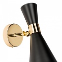 Бра стиля модерн для гостиной, кабинета или спальни имеет размеры 120x270x200 мм. Арматура светильника окрашена в золотой цвет. Лампы в комплекте - отсутствуют. В светильнике применяются лампы накаливания или светодиодная LED-лампа. Цвет плафонов - золото, черный, с матовой поверхностью. Материал плафонов - металл. Класс электробезопасности - I, степень пылевлагозащиты (IP) - 20. Максимальная мощность лампы (Вт) - 40. Светильник размещается на стене.