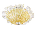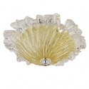 Накладной светильник стиля модерн для гостиной, кабинета, прихожей или спальни имеет размеры 340x130 мм. Арматура светильника окрашена в золотой цвет. Лампы в комплекте - отсутствуют. В светильнике применяются лампы накаливания или светодиодная LED-лампа. Цвет плафонов - неокрашенный, янтарный, с прозрачной, рельефной поверхностью. Материал плафонов - стекло. Класс электробезопасности - I, степень пылевлагозащиты (IP) - 20. Максимальная мощность лампы (Вт) - 40. Светильник размещается на потолоке.