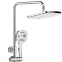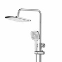 Душевая система с термостатом. В комплекте: смеситель с термостатом без излива, телескопическая штанга, верхний душ d265 мм с регулируемым углом наклона, ручной душ, регулируемый по высоте и наклону держатель, шланг 1500 мм в металлической оплетке.