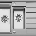 Форма чаши: прямоугольная • Материал: нерж. сталь • Количество чаш: 1 основная, 1 дополнительная • Установка: врезная • Крыло: есть, расположение на выбор • Глубина чаши: 21.5 см • Измельчитель пищевых отходов: нет • Размеры: 97x50 • Мотажное отверстие: 97x50 • Диаметр сливного отверстия: 3 "