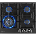 газовая на 4 конфорки • закаленное стекло • автоматический электроподжиг • газ-контроль • решетки: чугун • независимая установка • размеры (ШхГ): 58x51 см