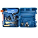 Мощность: 2000 Вт • Температура нагрева: от 80 °C, до 550 °C • Производительность: 550 л/мин • Вес фена: 850 г • Комплект: 4 насадки на сопло, скребок, шпатель, кейс
