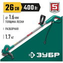 Производитель: ЗУБР Модель: Мастер ТСН-26-400 - электрический - 400 Вт - оснастка: леска Описание